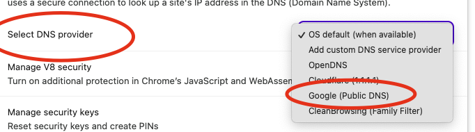 - Trong mục Security vừa chọn tiến hành tìm đến mục Select DNS provider